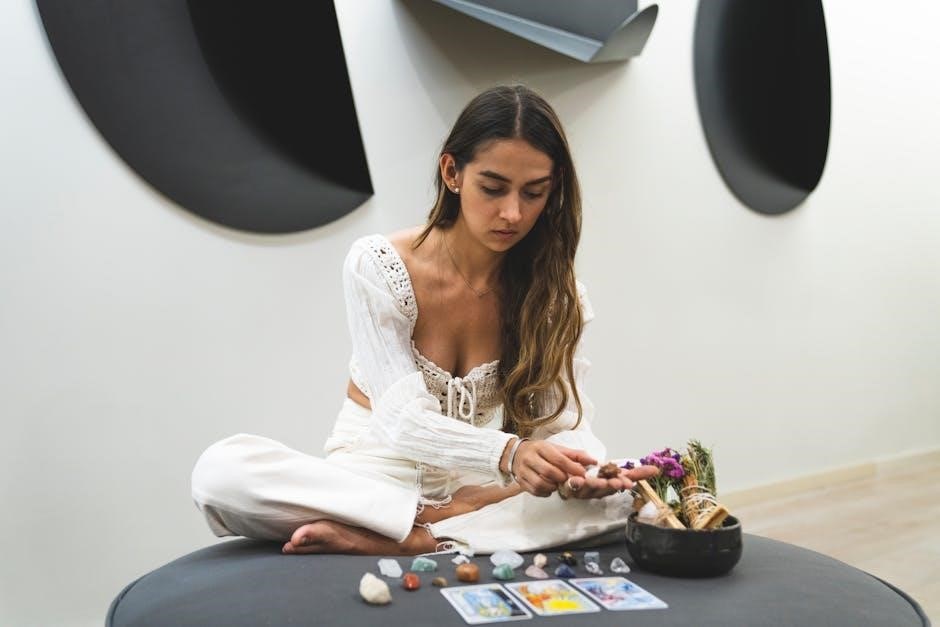 Ground yourself through deep breaths or meditation before handling the cards․ This centers your energy and opens you to receive guidance․ Remember, the space reflects your inner state; a calm and focused environment yields more insightful readings․