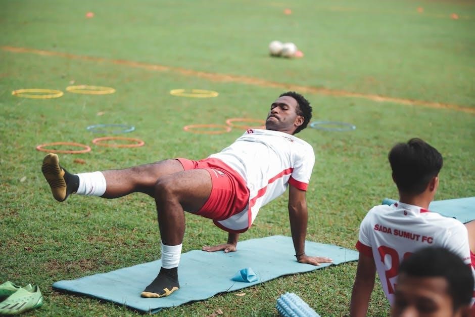 Light medicine ball Russian twists engage the core, while overhead reaches improve shoulder flexibility. A PDF guide should illustrate each exercise with clear instructions and recommended repetitions. Remember, the goal is to prepare your body for more intense activity, not to fatigue it. A thorough warm-up minimizes injury risk and maximizes workout effectiveness.